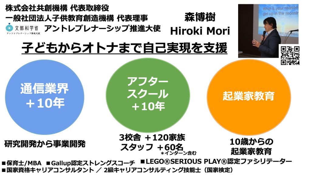 | 主な事業内容 | (1) 乳児・幼児・学童等を対象とした教育事業 (2)起業家教育(アントレプレナーシップ教育) (3) 保育事業 |